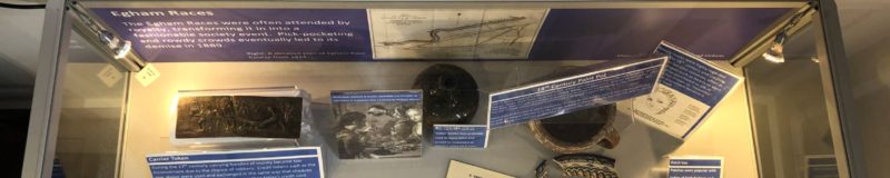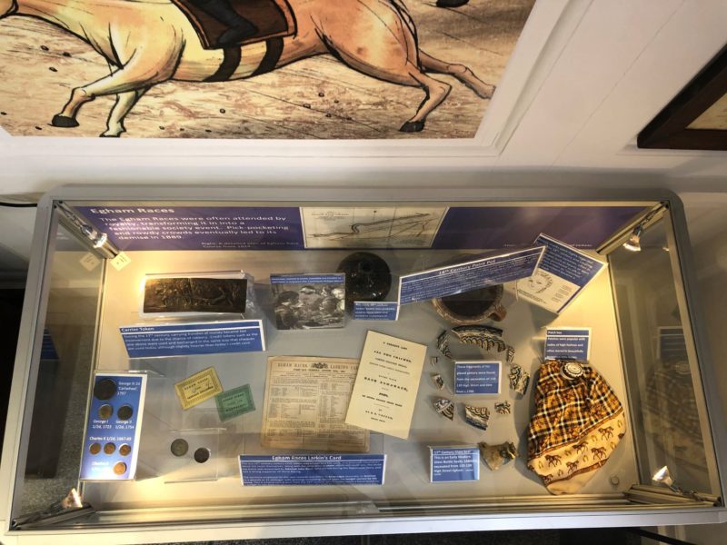 The first horse racing event in Egham began in 1734 on Runnymede Meadows. The races took place over three days and racers had to sign up at the Red Lion public house. The races became a popular annual event and soon a coach service from London to the racetrack was provided for spectators. The event was often attended by royalty, transforming it into a fashionable society event. Pick-pocketing and rowdy crowds eventually led to its demise in 1889. You can find out more about the Egham Races at http://eghammuseum.org/egham-races/
