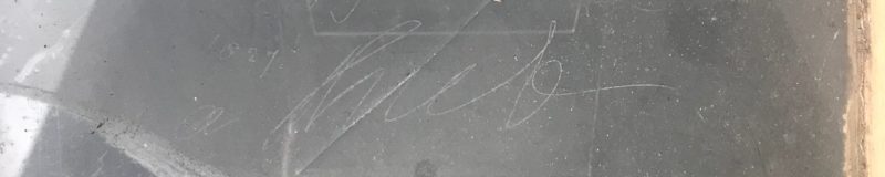 The inscription is not clear but we believe it was inscribed on the glass in 1827, and says: “ Long …. Every 1st Life Guards 1827… C Johnson(?)…. Mr L Pilloh“